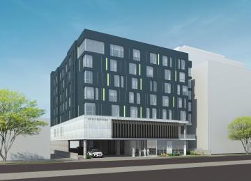 Seven-story, 110-room hotel rising at 679 S. Harvard Boulevard in Koreatown