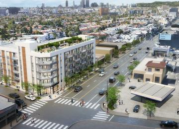 Mixed-use apartment building planned just west of Fairfax Avenue.