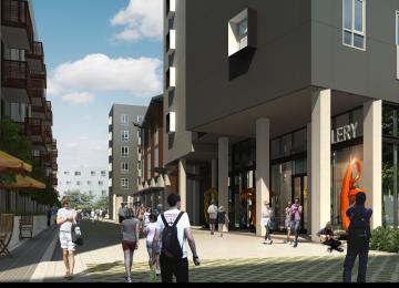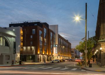 The 400,000-square-foot complex features 472 live/work apartments and retail space.