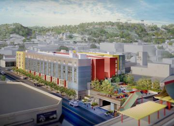 Long awaited mixed-use development rises near Chinatown Station.