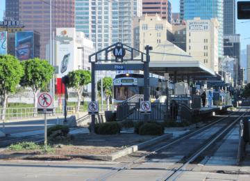 At-grade tracks through Downtown Los Angeles complicate commutes.