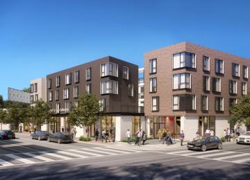 Affordable and permanent supportive housing with ground-floor commercial uses.