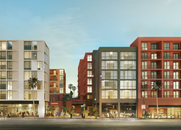 The $200-million development across the street from the Pantages Theatre will begin leasing this summer.