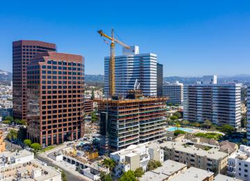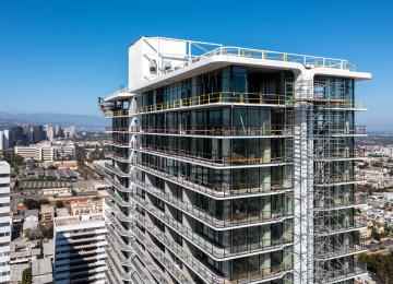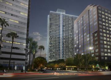 The 376-unit development is billed as the first residential tower west of the 405 Freeway in 40 years.