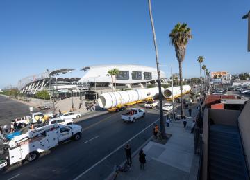 Space Shuttle Endeavor's Solid Rocket Motors arrive in Exposition Park