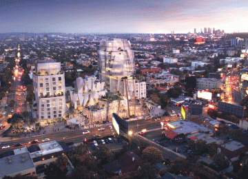 Initial renderings revealed for the $300 million mixed use project at Sunset and Crescent Heights Boulevards.