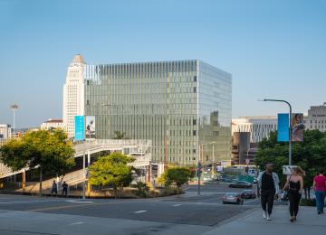 The $350-million project filled in an empty pit at 1st Street and Broadway.