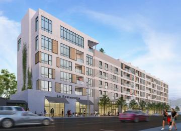 Five-story apartment building to replace car wash on La Cienega Boulevard.