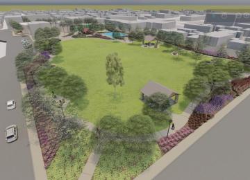 New play areas, fitness equipment, a large lawn, and trails for the 3.9-acre park