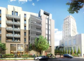 Seven-story complex rising at 5100 Wilshire Boulevard.