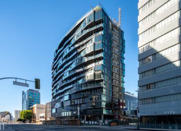 The 16-story tower is now complete in Beverly Grove