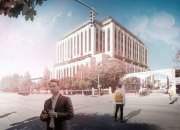 A dated 1985 office building is being renovated by Hudson Pacific Properties.