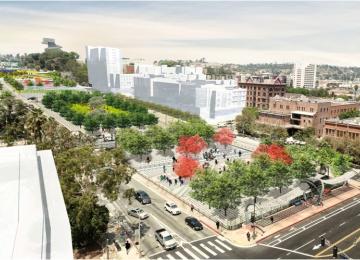 New green space above the Downtown Slot would reconnect El Pueblo with the Civic Center.
