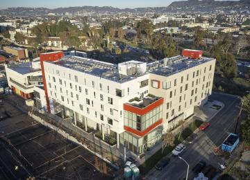 The six-story David T.C. Ho Family Building features 65 apartments for formerly homeless individuals.