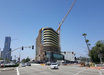 $200-million development rising at corner of Wilshire and Santa Monica Boulevards.
