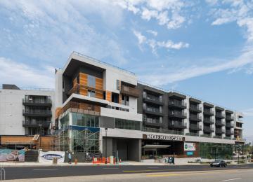 The five-story building is highlighted by a Whole Foods Market.