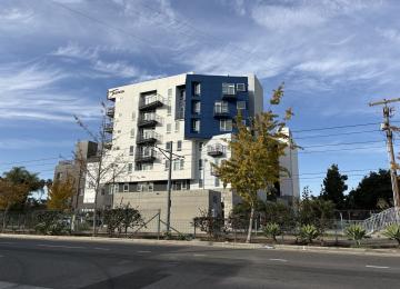 The seven-story building is located near USC and the E Line