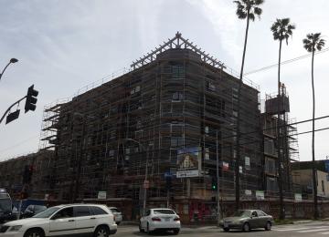 Construction wrapping up for six-story building next ot Koreatown Plaza.